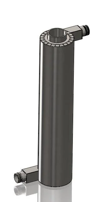 This is a 3D model rendering of a recuperator by Wet Dog Glass. Hot exhaust flows upward through the straight inner pipe. Fresh air circulates around the inner pipe collecting heat as it flows through the outer chamber which is sealed from mixing with the exhaust gases that are essentially depleted of oxygen. The outermost surface is a thin stainless steel jacket that conceals the fiber insulation around the outer air chamber.